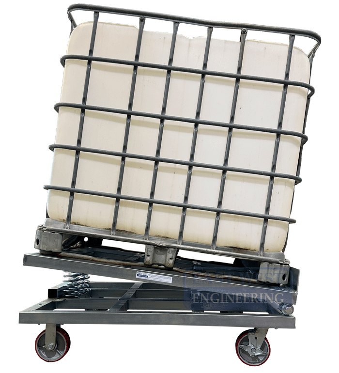 The mobile BTS10-W IBC Tilter is designed to effortlessly allow full discharge of liquid from intermediate bulk containers (IBC). As the volume of liquid contained in the IBC reduces the spring mechanism will raise the rear of the container to an incline of up to 10 degrees. Fitted with wheels, this unit can be wheeled around the workplace without the need for a forklift.