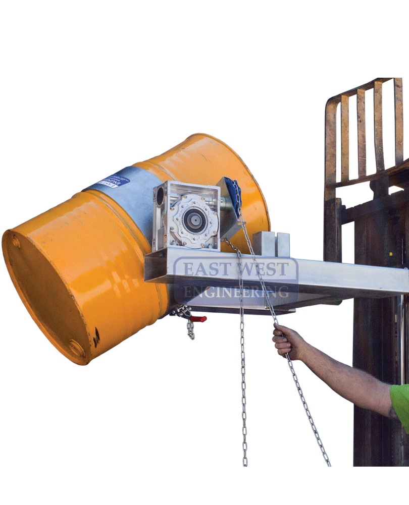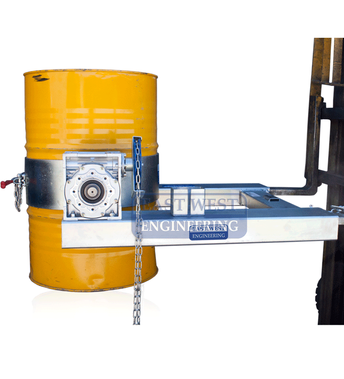 The DER40C Drum Rotator is designed as a fast and economical solution to lift and rotate a 205 litre drum 360 degrees. Rotation of the drum is fully controlled via a large worm-drive gear box which locks the drum in position when operator stops pulling the hand chain, preventing dangerous and uncontrolled movements.