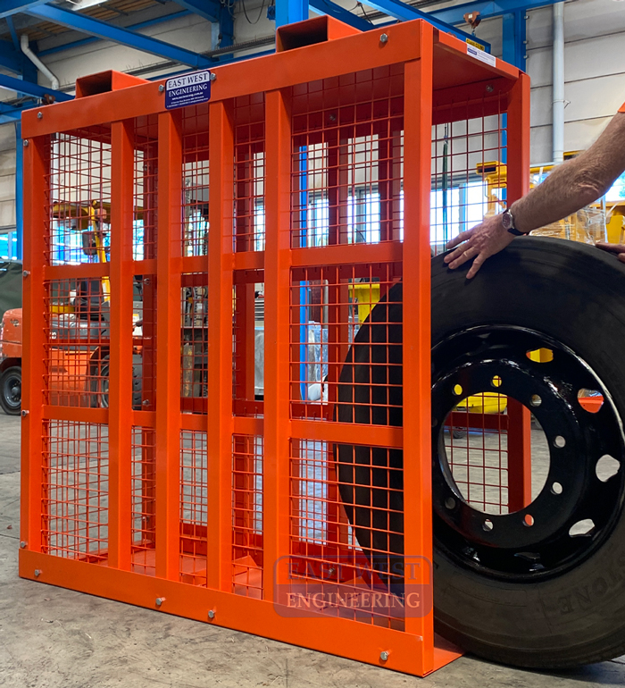 The STBC Tyre Inflation Cages is designed for the safe inflation of tyres. Working with tyres, particularly truck and machinery tyres, is dangerous because of their compressed air or gas, size and weight. The uncontrolled release of stored energy can have serious, even fatal consequences. When a tyre bursts or assemblies release, they can be propelled long distance at great speed with flying shrapnell. This heavy duty cage is constructed to provide protection against the risk of injury to workers and damage to plant and structures caused by a tyre blast.